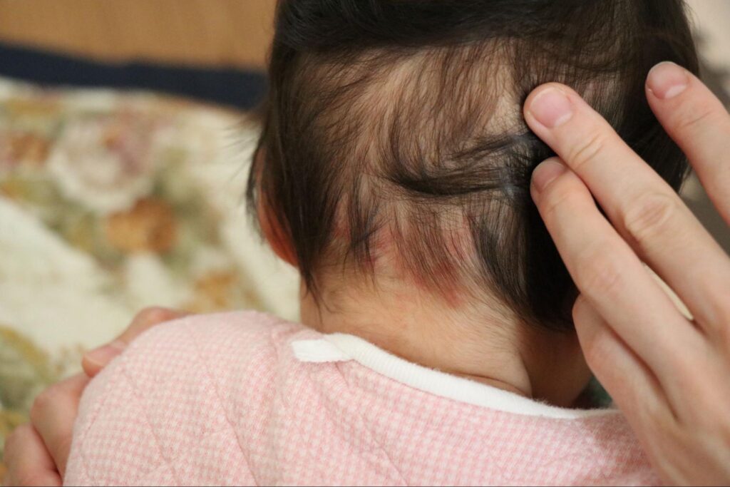 この2つは主に出現する部位の違いで区別されます。サーモンパッチは顔に、特にまぶたやおでこ、眉間などによくみられます。ウンナ母斑は首の後ろにみられます。